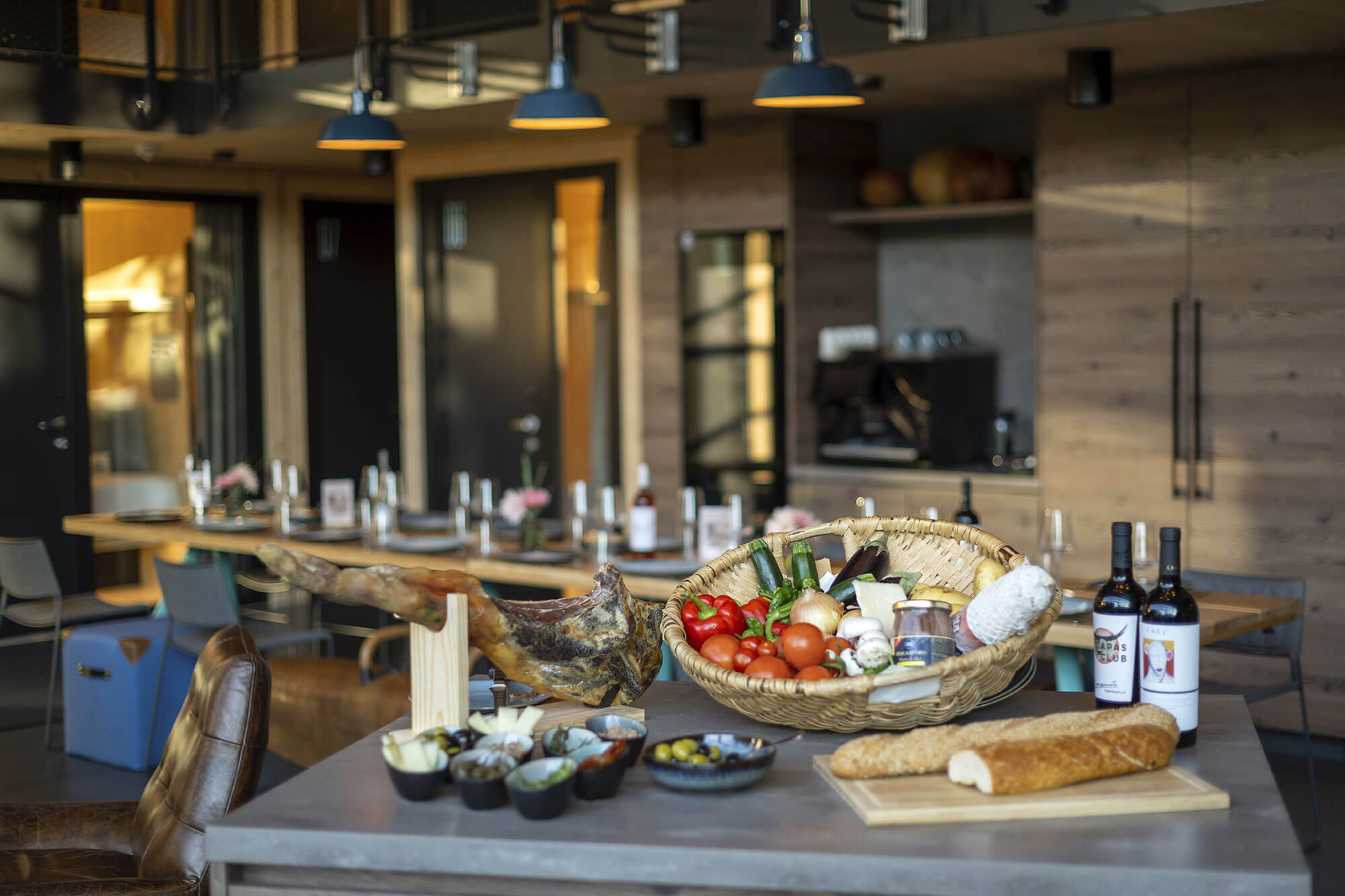 Einfach gemütlich und lecker: Im Gemeinschaftsbereich findest du eine Showküche für deinen Kochkurs oder zum Selberkochen mit allem was dazugehört: Herd, Backofen, Spülmaschine, ausreichend Arbeitsfläche, Weinschrank, Kaffeespezialitätenmaschine. Im Außenbereich gibt es eine Terrasse mit BBQ-Möglichkeit. Essen kannst du am großen Gemeinschaftstisch. Sitzecken laden dich zum Absacker ein. So wird dein Event unvergesslich.