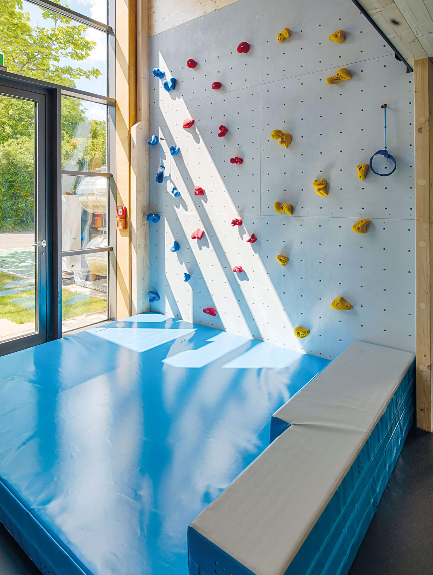 Die GymLodge ist eine ehemalige Turnhalle. Das Konzept sieht eine Übernachtung in Pods (Schlafkabinen) vor. Die Pods sind nachhaltig aus heimischem Vollholz gefertigt. Alle Pods sind mit kuscheligen Premium-Doppelbetten ausgestattet. Die Badezimmer sind von der Schlafeinheit separiert. Je nach Nutzungskonzept können einzelne Badzimmer fest einem Pod zugewiesen werden oder die Gruppe teilt sich die Badezimmer selbst zu.